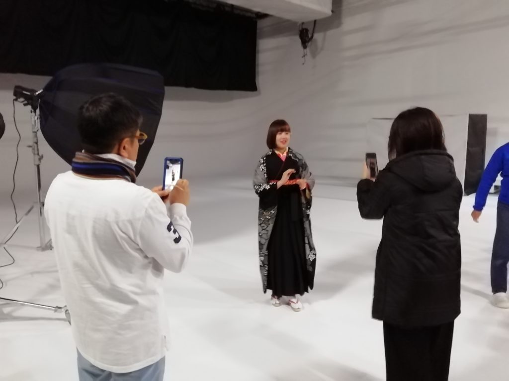卒業写真アルバム用の袴姿で着付とスタジオ撮影へ同行しました 着付 2020.01.272020.11.28 撮影の合間には、ご家族での撮影会も。 底冷えのするスタジオ内ですが、とても暖かい雰囲気の中、笑い声の絶えない撮影となりました。