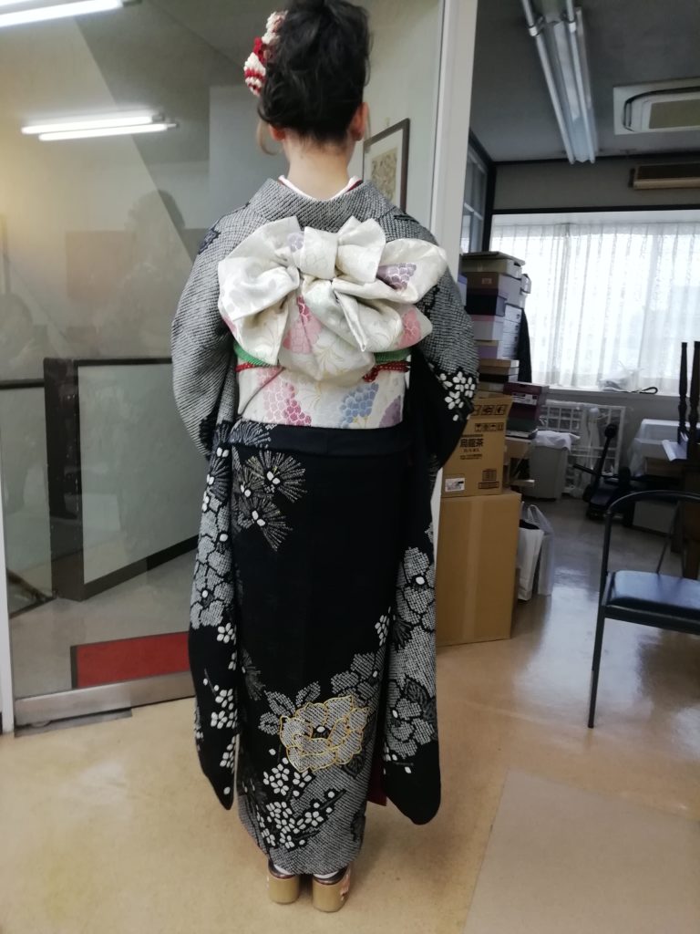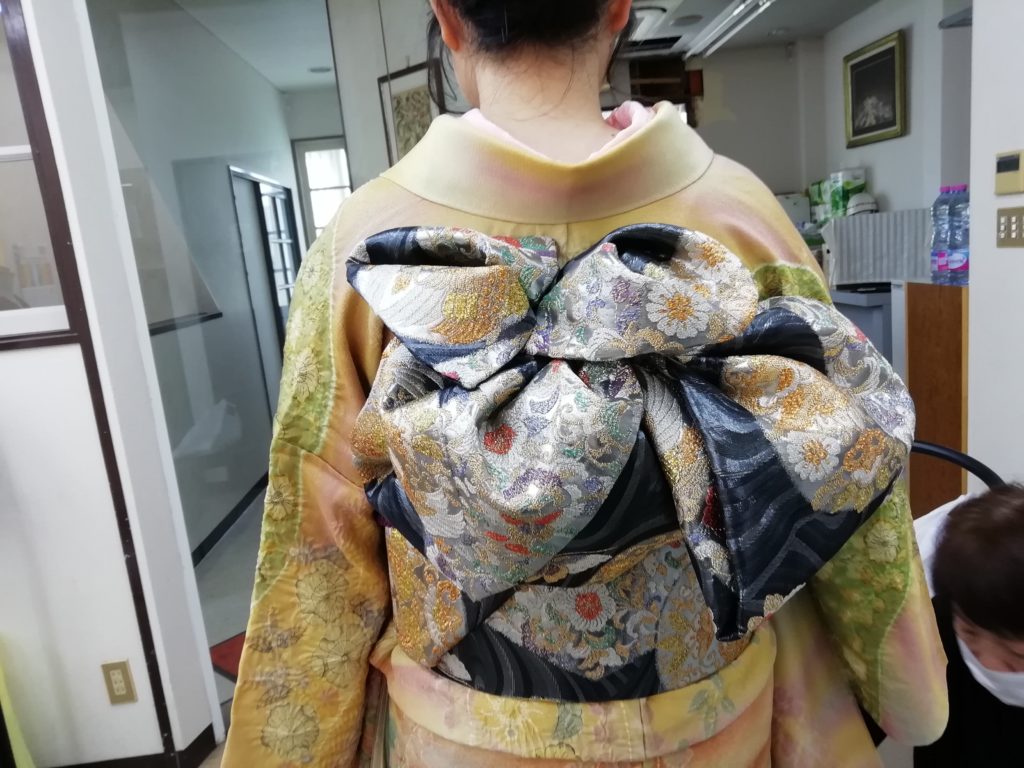着付では、腰高になるように着付をさせていただき、華やかな帯結びを。