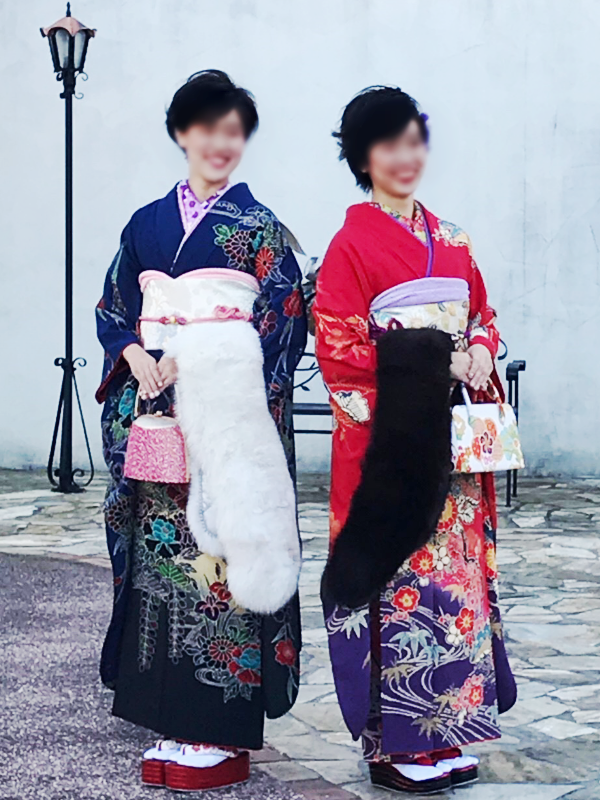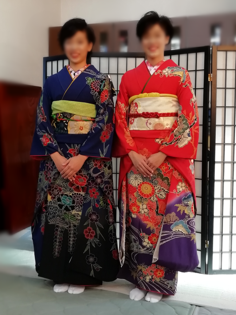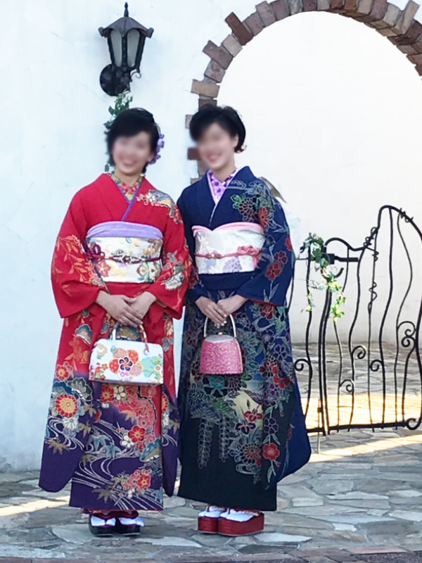 成人式(令和3年2021年)を迎えられる双子さんの振り袖姿前撮りの風景です。