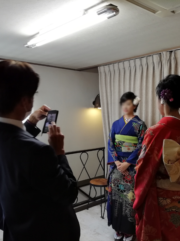 1着目の撮影が終わり次第、写真スタジオさんの一室をお借りして、2着目の着付をしました。