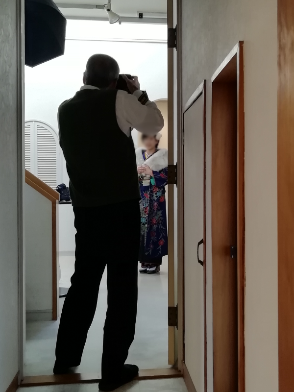 お着物2着をそれぞれ着られるという事で、まずは1着目をお店で着付させていただいて、スタジオへ向かいます。